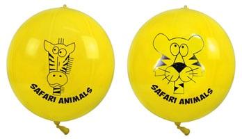 Duże, okrągłe balony jak piłka. Na balonach znajdują się różnorodne nadruki w stylistyce dziecięcej. W górnej części balonu została przymocowana gumka ułatwiająca trzymanie oraz zabawę. Balon o średnicy aż 40 cm po nadmuchaniu. Przeznaczony do pompowania powietrzem. W opakowaniu znajdują się 2 sztuki. Mix wzorów i kolorów.