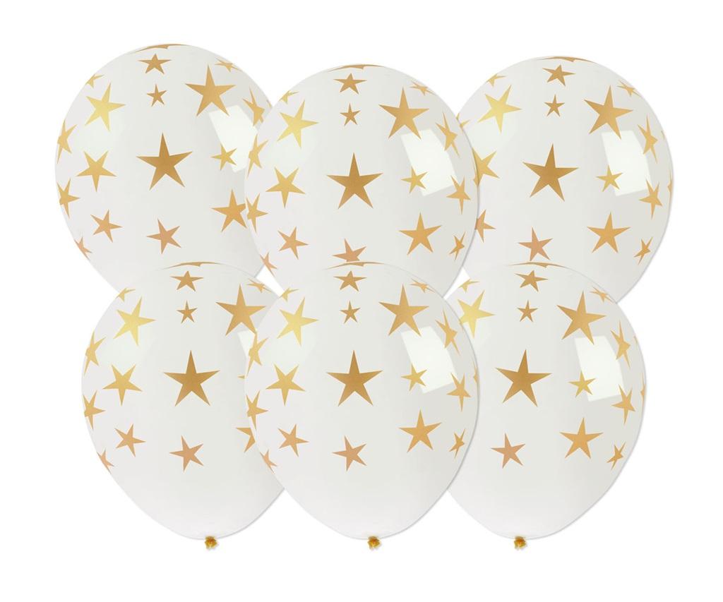 Balony ze złotym nadrukiem gwiazdki 6szt