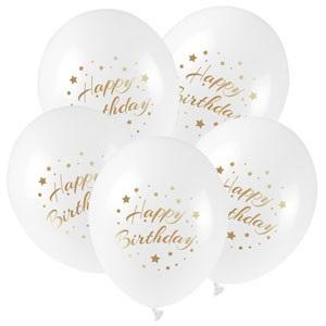 Balony ze złotym nadrukiem Happy Birthday 5szt