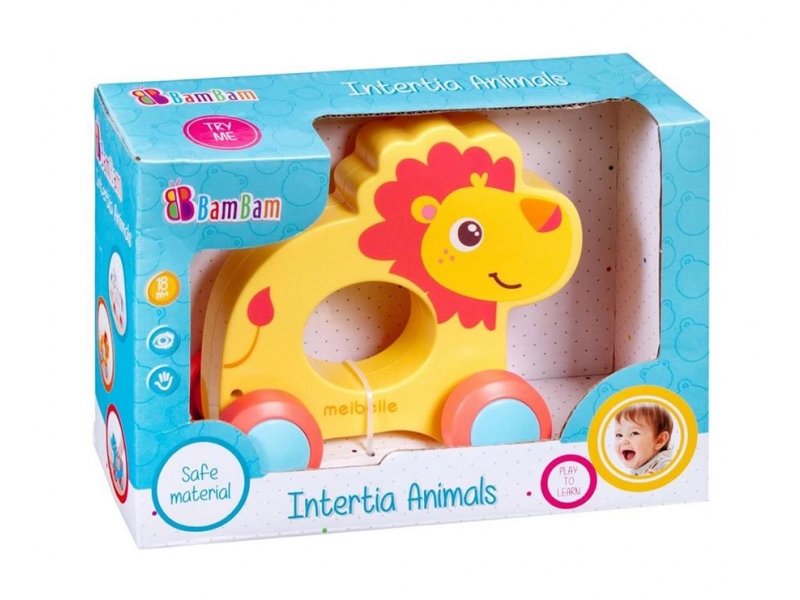 LEW NA KÓŁAKCH to zabawka edukacyjna dedykowana aktywnym odkrywcom od 18 m-ca życia. Kolorowy lew porusza się za pomocą pociągania za sznurek, wspomagając rozwój motoryczny i fizyczny dziecka, wyrabiając zmysł równowagi i koordynację. Przechadzanie się z zabawką, która porusza się w zależności od woli dziecka to także sposobność zarówno na doskonalenie umiejętności chodzenia jak i zrozumienie zależności i związku przyczynowo-skutkowego.
