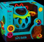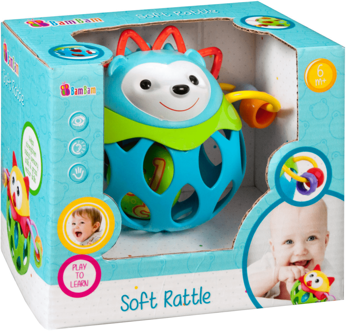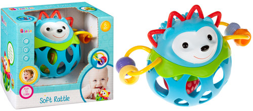 MIĘKKA, GUMOWANA KULA z GRZECHOTKĄ JEŻYK  BAM BAM  to idealna zabawka edukacyjna dla dziecka od 6 miesiąca życia. Wykonane z miękkiej i plastycznej gumy, z regularnymi otworami, w pełni pozwalają małym rączkom na chwytanie, ugniatanie, turlanie oraz potrząsanie, wydając przy tym efekty dźwiękowe, dzięki umieszczonej we wnętrzu grzechotce. Faktura i właściwości materiału, z jakiego została wykonana kula, pozwala im zawsze powracać do pierwotnego kształtu. Boczne uchwyty z kolorowymi obręczami są dodatkowym elementem, który rozwija zdolności manualne oraz urozmaica zabawę. Zabawka wpływa na rozwój wielu zmysłów, między innymi słuchu, wzroku oraz zdolności motorycznych