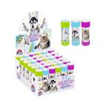Bańki mydlane z Kotami i pieskami od My Bubble ucieszą nie tylko bawiące się dziecko ale i wszystkich wokół. Idealne również do wykorzystywania podczas różnego rodzaju imprez plenerowych, przyjęć urodzinowych czy festynów! Pojemniczki wypełnione są specjalnym płynem do robienia baniek. Należy zamoczyć końcówkę w gotowym płynie, a po wyjęciu podmuchać. Każdy pojemniczek na zakrętce posiada gierkę labirynt z kulką. Bańki o pojemności 55 ml. Wykonany z plastiku. Przeznaczony dla dzieci w wieku: 3+.Pakowane w displayu po 36 szt. Długość: 11 cm. Wymiary opakowania zbiorczego (dł. x wys. x gł.) [cm] 23x12x23.