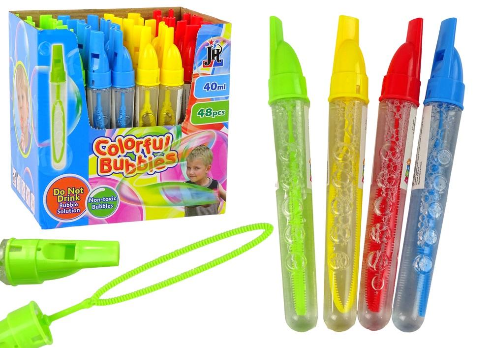 Bańki Mydlane Gwizdek 4 Kolory 40 ml Sposób na radość i uśmiech ! Puszczanie baniek to doskonała zabawa, która zachęci do zabawy na świeżym powietrzu. Piękne, tęczowe bąbelki, które unoszą się w powietrzu i szybują. Urozmaicą wspólną zabawę w ogrodzie. Maluch zacznie biegać, skakać próbując rozbić bańkę. Zwiększa przy tym koordynację i równowagę. Zabawka przyda się na imprezy okolicznościowe lub wspólne zabawy na podwórku. Gwizdek będzie dodatkiem do wspólnych zabaw, zwłaszcza tych na czas. Nie tylko będziesz mógł bawić się bańkami, ale i rozpocząć zabawy kto pierwszy ten lepszy. Pierwszy gwizdek i START! Pojemnik ma kształt podłużnej buteleczki. Płyn w środku jest bezbarwny, wystarczy wyciągnąć patyczek, dmuchnąć lub lekko machnąć, a naszym oczom ukażą się kolorowe bańki. Produkt występuje w czterech kolorach: - niebieskim - zielonym - żółtym - czerwonym. Cena dotyczy 1 szt. Wymiary jednej bańki: 19 cm x 3 cm x 3 cm Wymiary opakowania: 20 cm x 4 cm x 4 cm Bańki mydlane przeznaczone są dla wszystkich dzieci powyżej 3. roku życia. Zgodne z certyfikatem CE, a jego produkcja jest zgodna z normą EN 71, co gwarantuje bezpieczeństwo płynące z użytkowania.