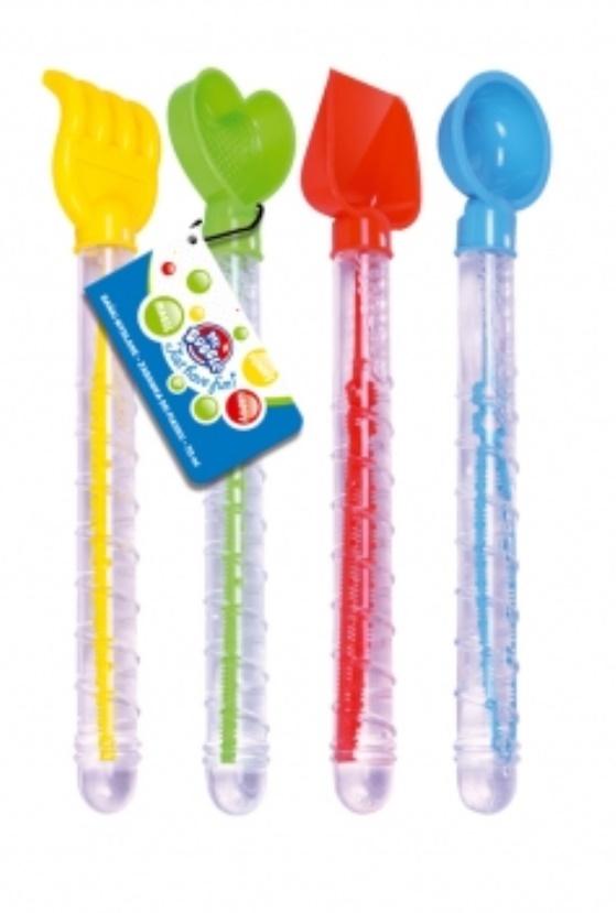 Bańki mydlane o pojemnościo 70ml, z zakończeniami nadającymi się do zabawy w piasku.
