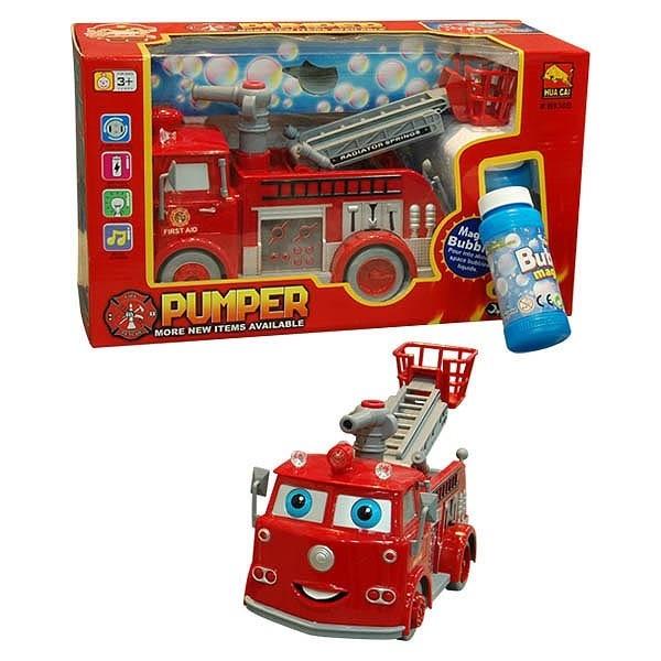 Wóz strażacki na baterię, sam jeździ i odbija się od przeszkód, puszcza bańki mydlane, ruchome elementy podczas jazdy, wydaje dźwięki. Zabawka posiada certyfikat CE. Zabawka przeznaczona dla dzieci powyżej 3go roku życia.