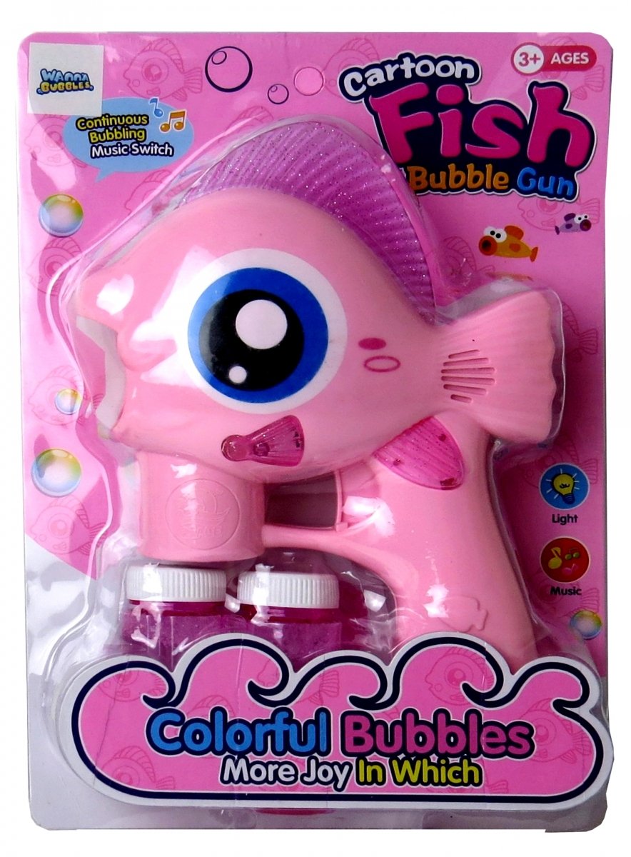 Zabawka posiada mechanizm spustu, po naciśnięciu spustu rurka pobiera płyn z pojemnika; następnie pada na nie strumień powietrza z wiatraczka. Tak powstają bańki!Rybką można bawić się w ogrodzie i nie tylko. Bańki puszczane są automatycznie. Zabawka wytwarza dużą ilość baniek równocześnie.