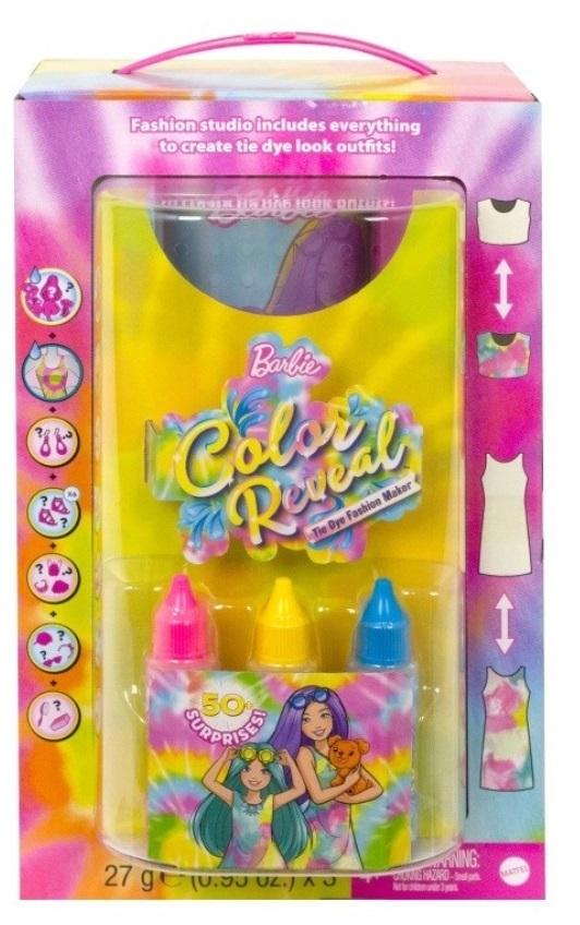 - Dzięki 50 niespodziankom zestaw do farbowania ubranek Barbie Color Reveal Neon Tie-Dye zapewnia zabawę pełną niezwykłych odkryć.