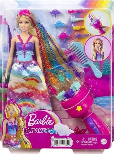 Mali styliści mogą tworzyć swoje wymarzone stylizacje dzięki lalce księżniczce Barbie Dreamtopia Zakręcone pasemk! Lalka księżniczka Barbie ma bardzo długie włosy (ok. 21 cm), tęczowe pasemka do zakręcania i splatania oraz przyrząd, który sprawia, że stylizacja jest przyjemna i łatwa.