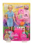 Barbie® może zabrać ze sobą szczeniaczka i młode marzycielki w podróż dookoła świata z tym wyjątkowym podróżniczym zestawem zainspirowanym serialem „Barbie Dreamhouse Adventures”, który zawiera zabawne, kolorowe elementy pobudzające wyobraźnię – zajrzyj w codzienne życie Barbie®, gdy wyrusza na ekscytujące przygody z rodziną i przyjaciółmi! Lalka Barbie® ma ze sobą ukochanego szczeniaczka jako towarzysza podróży i różową walizkę, która otwiera się i zamyka – jest nawet wyposażona w wysuwany uchwyt, tak jak prawdziwy bagaż! Ponadto zestaw podróżny zawiera arkusz naklejek, które można wykorzystać do udekorowania walizki i udokumentowania podróży. Wypełnij walizkę i już ozdobiony, różowy plecak przedmiotami niezbędnymi w podróży, takimi jak telefon komórkowy, opaska na oczy, poduszka pod szyję i słuchawki. Po dotarciu na miejsce Barbie® może się odświeżyć, korzystając ze szczoteczki i pasty do zębów, które mieszczą się w jej kosmetyczce. Następnie może założyć okulary przeciwsłoneczne i wyjść, aby robić zdjęcia zwiedzanych miejsc. Jest gotowa na każdą przygodę w jeansowej sukience z paskiem i modnych tenisówkach! Zbieraj inne lalki podróżniczki Barbie®, aby poszerzyć możliwości zabawy (produkty sprzedawane oddzielnie w zależności od dostępności). W zestawie znajduje się lalka Barbie® w modnym stroju i butach, szczeniaczek, walizka, plecak, naklejki oraz 10 akcesoriów podróżnych. Lalka nie stoi samodzielnie. Dla dzieci w wieku od 3 lat
