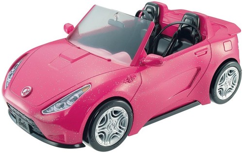 Udaj się w podróż kabrioletem Barbie® i przeżyj wyjątkowe przygody! Ten charakterystyczny dla stylu Barbie® dwumiejscowy samochód zaprojektowano w brokatowym różowym kolorze, a jego maskę ozdobiono dodatkowo symbolem Barbie®. To słodkie sportowe autko posiada dodatkowo tylny spojler i czarno-srebrne koła, które naprawdę się obracają. Nowoczesne wnętrze zaprojektowano w elegancikim czarnym kolorze z realistyczną tapicerką i pasami bezpieczeństwa dla lalek (lalki sprzedawane osobno). Popchnij kabriolet i ruszaj na wielką wyprawę, ponieważ z Barbie® wszystko jest możliwe! W zestawie ekskluzywny kabriolet Barbie®. Lalka nie znajduje się w zestawie. Kolory i elementy dekoracyjne mogą się różnić. Dla dzieci w wieku od 3 lat