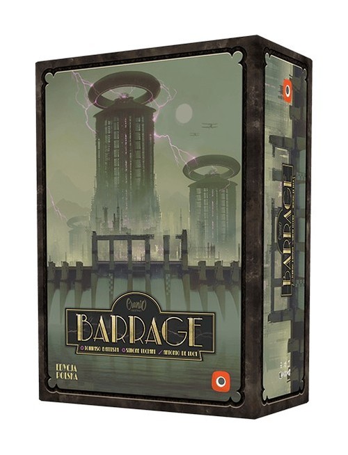 Barrage to zaawansowana ekonomiczna gra planszowa, w której każdy pełni rolę prezesa spółki państwowej walczącej o prymat na rynku produkcji energii w regionie Alp. Gracze kupują i korzystają z technologii, by budować tamy i elektrownie wodne oraz łączą je za pomocą kanałów. Kompletny system wodny pozwala na użycie zgromadzonej przy tamach wody do produkcji energii i realizację kontraktów. Zawartość: 1 dwustronna Mapa 15 kafli Zaawansowanych Technologii 7 kafli Dyrektorów Wykonawczych 6 kafli Kontraktów Państwowych 30 Kropel Wody Kredyty Hydroelektryczne 4 Koła Budowy 5 Podstaw dla każdej z 4 Spółek 1 znacznik Kolejności dla każdej z 4 Spółek 1 plansza Zarządu 6 kafli Premii 1 kafel Specjalnej Technologii Antona Krylova 8 kafli Źródeł 34 Koparki 20 kafli Automy 5 Podwyższeń dla każdej z 4 Spółek 1 znacznik Energii dla każdej z 4 Spółek 1 plansza Biura Patentowego 6 kafli Celów 45 kafli Kontraktów Prywatnych 3 neutralne Podwyższenia 26 Betoniarek 5 kafli Technologii Podstawowych dla każdej z 4 Spółek 5 Kanałów dla każdej z 4 Spółek 1 znacznik Punktów Zwycięstwa dla każdej z 4 Spółek 1 tor Energii 10 kafli Przygotowania 4 kafle Kontraktów Początkowych 3 neutralne Podstawy 4 plansze Spółek 1 Pomoc Gracza dla każdej z 4 Spółek 4 Elektrownie dla każdej z 4 Spółek 12 Inżynierów dla każdej z 4 Spółek Wiek graczy: 14+ Liczba graczy: 1-4 Czas rozgrywki: 2 godziny