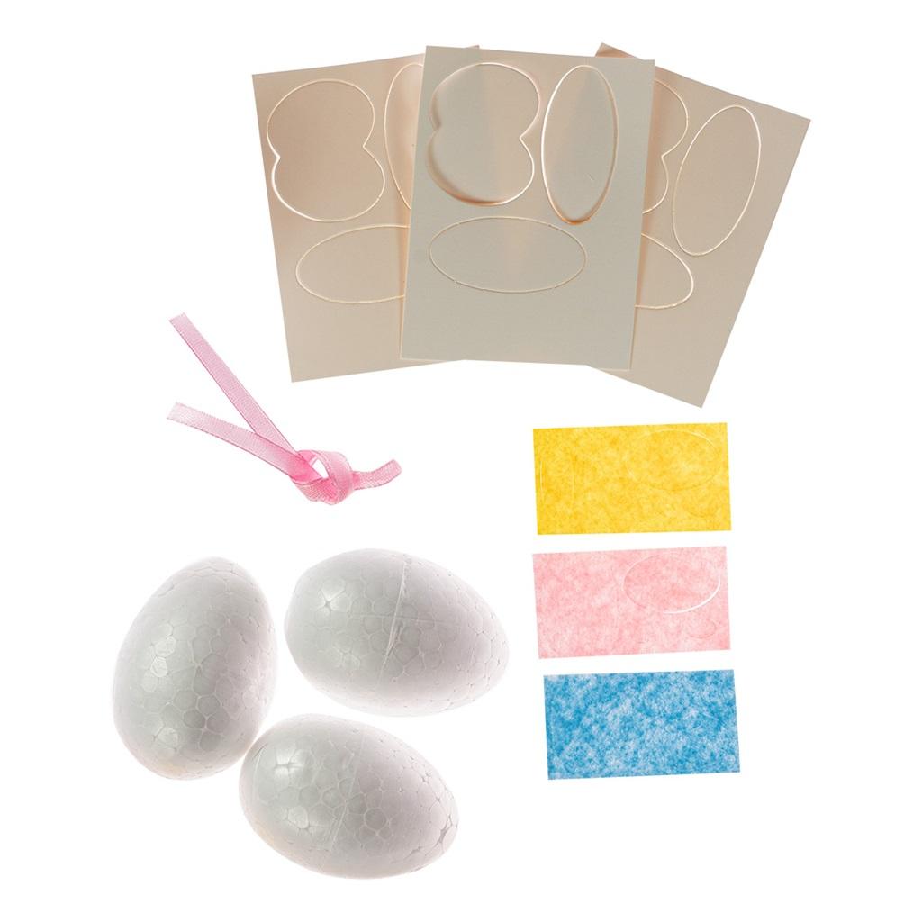 Zestaw do dekoracji pisanek w stylu glamour. W zestawie barwniki w 4 kolorach oraz 9 owijek na jajka z eleganckimi wzorami w złotym kolorze. Kolory barwników: żółty, czerwony, zielony, niebieski. Gotowy zestaw do zrobienia wyjątkowych pisanek. Sposób użycia produktu znajduje się na opakowaniu. Barwniki są przeznaczone wyłącznie do barwienia jaj.