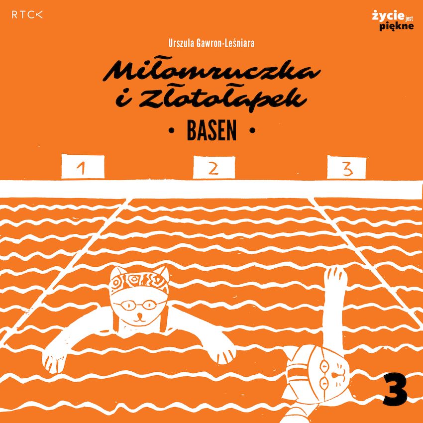 Miłomruczka zaprasza Złotołapka na basen. Choć woda jest odrobinę rześka, pływanie daje przyjaciołom sporo radości, szczególnie gdy ścigają się stylem… kocim.