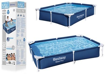 Basen Ogrodowy Stelażowy 221x150x43 cm Bestway 56401 Wymiary basenu umożliwiają swobodne pływanie i nieograniczone zabawy w letnie dni! Designerskie wnętrze zapewnia wyjątkowy i nowoczesny wygląd, który świetnie się wkomponowuje w każdy ogród. Odporna na korozję stalowa rama jest solidna i trwała, aby zapewnić Twojej rodzinie radość przez całe lato. Podłoże basenu wykonane jest z trwałego materiału, który jest wzmocniony w celu zapewnienia wytrzymałości i odporności na przebicie. Basen ten jest bardzo łatwy w montażu i demontażu w celu przechowywania poza sezonem. Basen jest również idealnie przystosowany dla twoich pociech dzięki swojej niewielkiej głębokości będą one bezpieczne i nie będziesz musiał martwić się podczas ich zabawy. Dane techniczne: Wymiary basenu 221 x 150 x 43 cm Zalecane wypełnienie wodą 90 % Pojemność 1200 litrów Zawartość zestawu: Basen stelażowy 221 x 150 x 43 cm Łatka naprawcza Instrukcja Waga: 10kg Wymiary opakowania: 26,5 cm x 19,5 cm x 83 cm