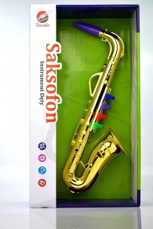 Bassko zabawkowe Instrumenty dla dzieci Instrument pomaga dziecku rozpoznawać różne tony i wygrywać melodyjki. Bardzo ładny, srebrny saksofon zabawka o długości 36cm i z czterema przyciskami. Dzięki instrumentowi dziecko odkryje wspaniały świat dźwięków. Genialny saksofon dla początkujących muzyków. Wydaje miłe, delikatne dźwięki.