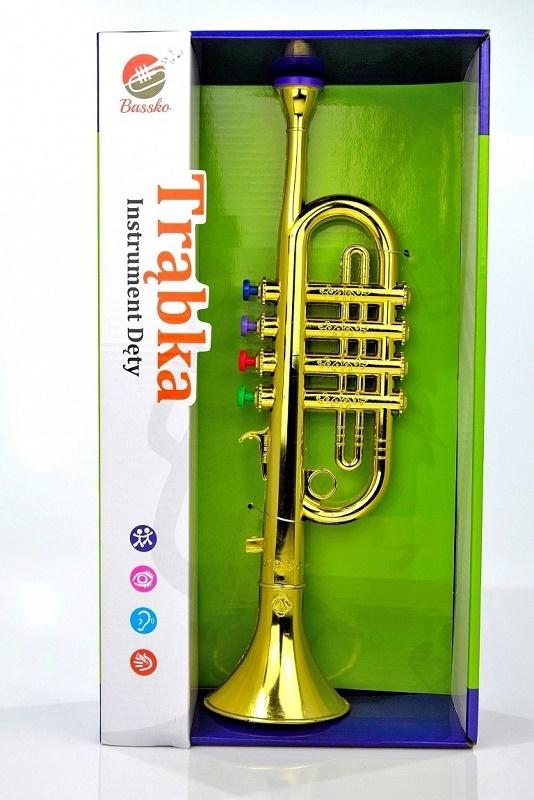 Bassko zabawkowe Instrumenty dla dzieci Instrument pomaga dziecku rozpoznawać różne tony i wygrywać melodyjki. Bardzo ładna, złota trąbka zabawka o długości 37 cm i z czterema przyciskami. Dzięki niej dziecko odkryje wspaniały świat dźwięków. Genialna trąbka dla początkujących muzyków. Wydaje miłe, delikatne dźwięki.