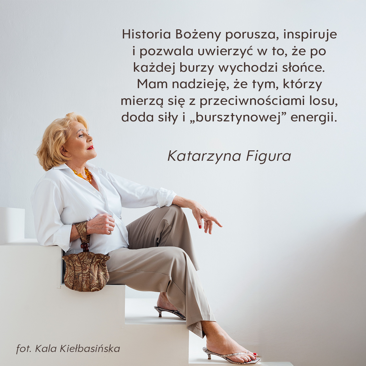 Historia silnej, niezwykłej, „bursztynowej” Bożeny Batyckiej. To opowieść o wielkiej sile i determinacji, o radzeniu sobie pomimo wielu ciosów, jakie zadaje życie. Bezustannie podziwiam Bożenę za jej niekończący się optymizm i słoneczny uśmiech. Książkę polecam wszystkim, którym potrzebna jest wiara w siebie i własne możliwości.