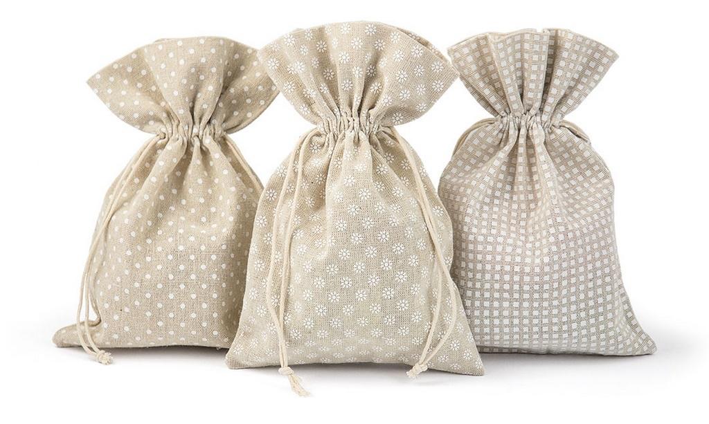 Bawełniany woreczek w naturalnym kolorze, delikatnie zdobiony. Wymiary: 17x26 cm.