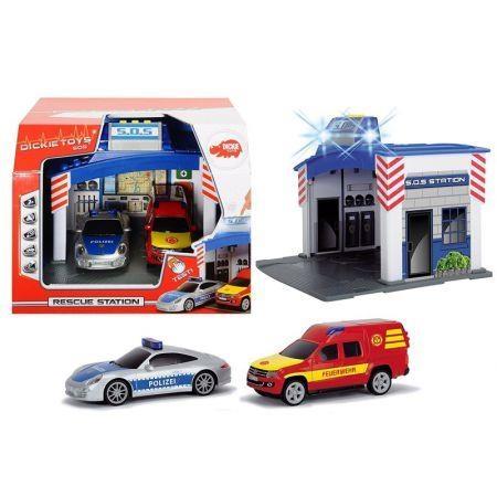 Baza SOS Rescue w zestawie dwa pojazdy - straż i policja. Zabawka wydaje dźwięki. Dla dzieci od lat 3.