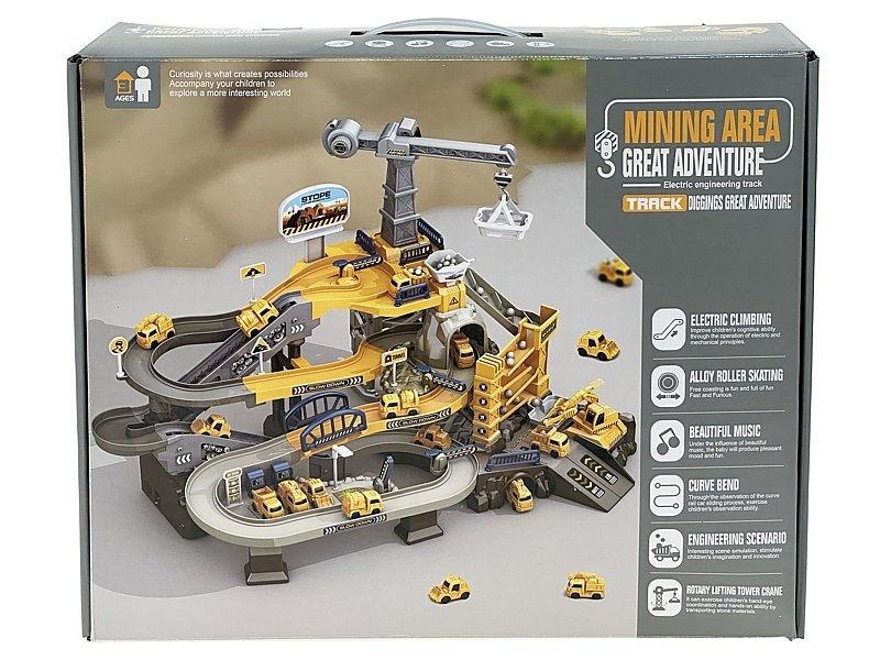 baza załadunkowa węgla, tor 3 poziomowy, dźwig, pojazdy budowlane; 42x34x13cm