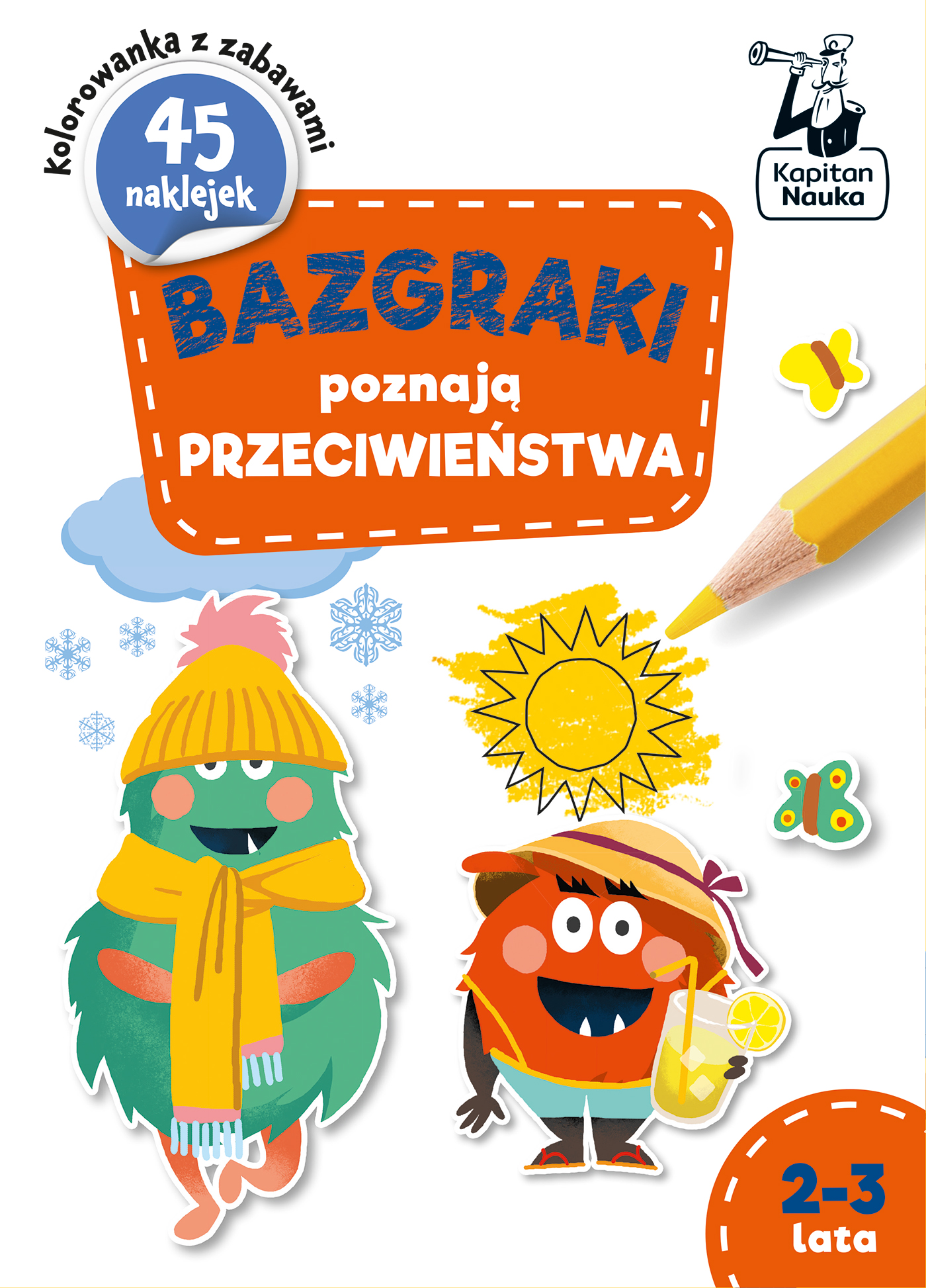 Bazgraki poznają PRZECIWIEŃSTWA(2-3 lata) to książeczka z pomysłowymi zadaniami dla maluchów, która rozwija wiedzę o świecie, spostrzegawczość i myślenie logiczne. W zabawach z książeczką maluch poznaje takie przeciwieństwa jak: mały - duży, szybki - wolny, zimny - ciepły czy długi - krótki. Uczy się rozpoznawać różnice i podobieństwa oraz łączyć obiekty w pary na zasadzie skojarzeń. Przy okazji rozwija słownictwo związane z cechami ludzi, zwierząt i przedmiotów.