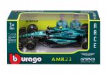 BOLID F1 Aston Martin Aramco Cognizant Team AMR23 (2023) #14 Fernando Alonso oryginalny produkt marki Bburago, oficjalny, licencjonowany wzór pojazdu, metalowy model z plastikowymi elementami, perfekcyjne odwzorowanie szczegółów. Wymiary: długość 13cm, szerokość 5cm, wysokość 3cm. Wymiary opakowania: 14 x 6,5 x 7,5cm. Aston Martin AMR23 to bolid Formuły 1, który zadebiutował w sezonie 2023, stanowiąc kontynuację dynamicznego rozwoju zespołu Aston Martin Aramco Cognizant Formula One Team. Zespół, prowadzony przez znanego wświecie motorsportu inżyniera Dana Fallowsa, wdrożył nowe rozwiązania w zakresie przepływu powietrza, zwłaszcza wokół tylnego skrzydła i dyfuzora, aby zmaksymalizować docisk aerodynamiczny. W efekcie AMR23 zyskał bardziej agresywny i wyrazisty wygląd, jednocześnie poprawiając stabilność przy wysokich prędkościach. Bolid, prowadzony przez kierowców Fernando Alonso i Lance'a Strolla, wykazywał się konkurencyjnymi osiągami, zwłaszcza na początku sezonu, co pozwoliło Aston Martin zbliżyć się do czołówki i powalczyć o miejsca w pierwszej piątce klasyfikacji konstruktorów.