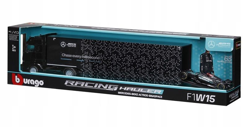 Opakowanie Bburago Model 1:43 F1 + SemiTruck Mercedes AMG Russell 18-38402