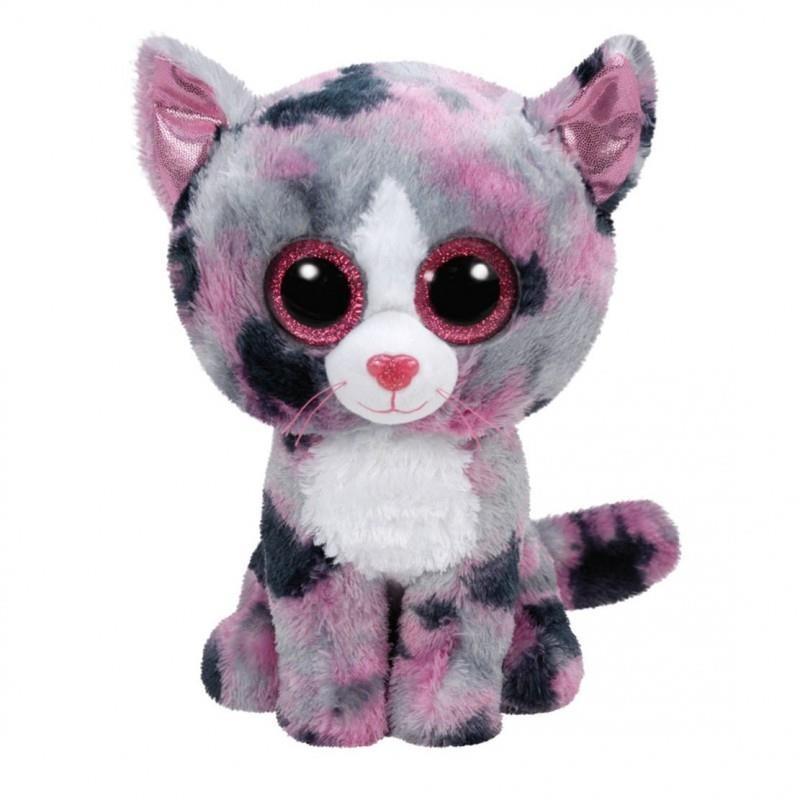 Zabawka pluszowa Beanie Boos Lindi łaciaty kotek z błyszczącymi oczami. Rozmiar 20 cm. Dla dzieci w wieku od 3 lat.