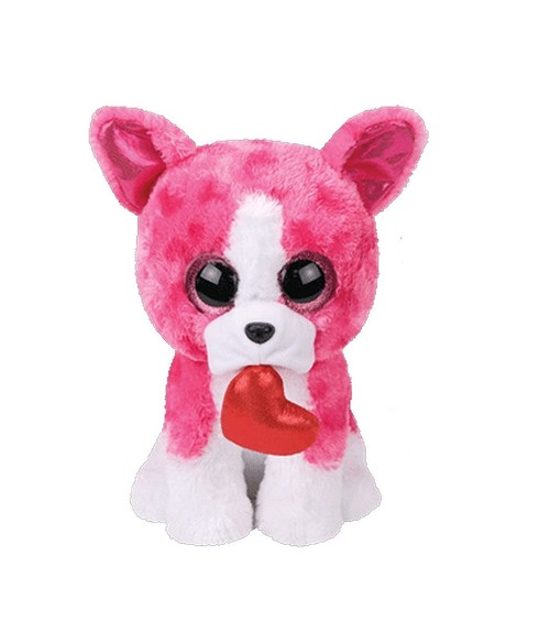 Zabawka pluszowa Beanie Boos Romeo - różowy piesek z błyszczącymi oczami. Rozmiar 24 cm. Dla dzieci w wieku od 3 lat.