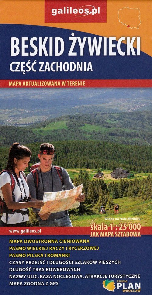 Szczegółowa mapa turystyczna Beskidu Żywieckiego część zachodnia, wydanie na 2018 rok, uwzględnia atrakcje, zabytki, ciekawe miejsca oraz infrastrukturę turystyczną i sportową. Zawiera aktualny przebieg szlaków pieszych i rowerowych wraz z kilometrażem i orientacyjnymi czasami przejścia. Mapa obejmuje zachodnią część pasma Beskidu Żywieckiego z miejscowościami: Węgierska Górka; Milówka, Korbielów, Rajcza, Zwardoń oraz pograniczem polsko-słowackim. Na mapie zastosowano cieniowanie dla plastycznego ukazania rzeźby terenu.