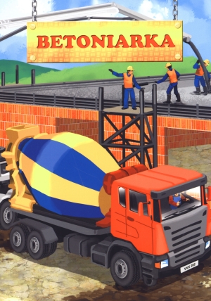 Wspaniała książeczka z kolorowymi ilustracjami, dla najmłodszych czytelników, o Radku i jego pracy z betoniarką.