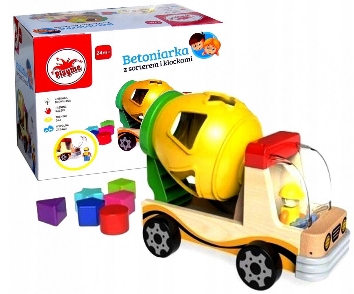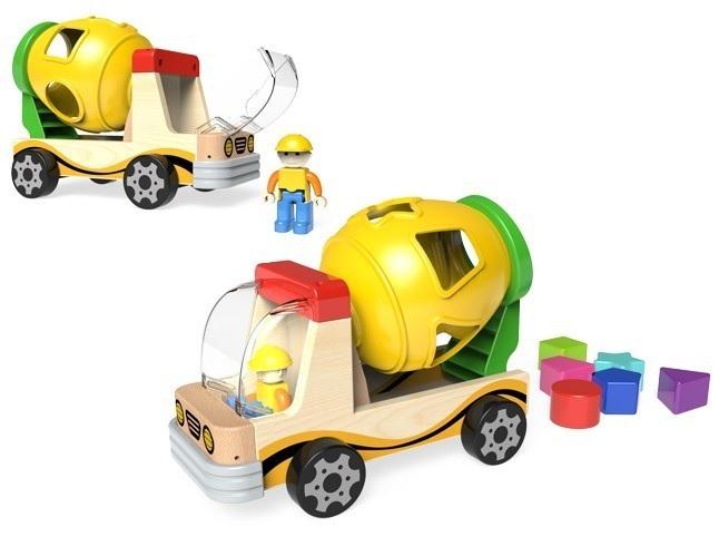 Betoniarka z sorterem kształtów firmy Top Bright. Pojazd wykonany z drewna oraz wysokiej jakości nietoksycznego plastiku. W zestawie z pojazdem - figurka kierowcy oraz 7 klocków Wymiary zabawki 19.4 x 25.3 x 13.4 cm. Wymiary opakowania 31.6 x 15 x 21 cm. Przeznaczony dla dzieci powyżej 18 miesiąca życia.