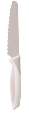 Ostrze wykonane ze stali nierdzewnej ma zaokrąglone, ząbkowane krawędzie - bez ostrych elementów. I to ze wszystkich stron: górnej, dolnej, bocznych i czubka. Cokolwiek się wydarzy przy stole, palce są bezpieczne. Ostrze działa w ruchu piłującym lub siekającym, utrzymując stały kontakt z jedzeniem. Dzięki temu krojenie jest skuteczne i płynne, a jednocześnie bezpieczne dla małych dłoni.