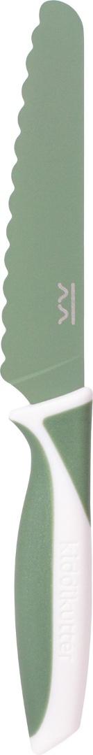 kiddikutter CUTS FOOD NOT FINGERS Mały nóż, wielka zmiana w kuchni! KiddiKutter to wyjątkowy nóż kuchenny zaprojektowany specjalnie z myślą o dzieciach. Kroi jedzenie nie palce. Dzięki sprytnej, opatentowanej konstrukcji maluch może bezpiecznie kroić owoce, warzywa, mięso czy pieczywo i z dumą uczestniczyć w przygotowywaniu posiłków. Bo kiedy dziecko pomaga w kuchni, dzieje się magia nowe smaki przestają być straszne, warzywa smakują lepiej, a niejadek zamienia się w ciekawskiego odkrywcę. Jak to działa? Ostrze wykonane ze stali nierdzewnej ma zaokrąglone, ząbkowane krawędzie bez ostrych elementów. I to ze wszystkich stron: górnej, dolnej, bocznych i czubka. Cokolwiek się wydarzy przy stole, palce są bezpieczne. Ostrze działa w ruchu piłującym lub siekającym, utrzymując stały kontakt z jedzeniem. Dzięki temu krojenie jest skuteczne i płynne, a jednocześnie bezpieczne dla małych dłoni. Serio ten nóż kroi pomidora i steka, ale nie skaleczy palców. Dlaczego dzieci (i rodzice) go pokochają? wspiera samodzielność i buduje pewność siebie rozwija motorykę małą oraz koordynację rękaoko zachęca do próbowania nowych smaków szczególnie pomocny przy wybiórczości pokarmowej ma wygodny, ergonomiczny uchwyt dopasowany do małych rąk nadaje się dla dzieci prawo- i leworęcznych jest wolny od BPA i posiada certyfikat bezpieczeństwa do kontaktu z żywnością (FDA, EU, Australia) ostrze i opakowanie nadają się w 100% do recyklingu To wielokrotnie nagradzany produkt, któremu zaufały setki tysięcy rodzin w ponad 40 krajach. Gotowanie, które zmienia więcej niż tylko menu Wspólne przygotowywanie posiłków to coś więcej niż krojenie ogórka. To rozmowy przy blacie kuchennym, nauka praktycznych umiejętności, poznawanie faktur i zapachów, a przede wszystkim poczucie sprawczości. Ten moment, gdy dziecko mówi: Zrobiłem to sam! jest bezcenny. KiddiKutter świetnie sprawdza się przy: krojeniu owoców do śniadania przygotowywaniu warzyw do sałatki smarowaniu i krojeniu kanapek wspólnym planowaniu i przygotowywaniu rodzinnych posiłków Dla dzieci ze specjalnymi potrzebami KiddiKutter narodził się z potrzeby dziecka z dyspraksją i od początku jest narzędziem polecanym przez terapeutów zajęciowych. Bezpieczne, lekkie ostrze (zaledwie 75 g) i naturalny ruch piłowania sprawiają, że krojenie staje się dostępne dla dzieci, które z tradycyjnymi nożami nie miałyby szans. Sprawdza się szczególnie przy: dyspraksji i zaburzeniach koordynacji ruchowej (DCD) ruch piłowania angażuje planowanie motoryczne bez ryzyka skaleczenia ADHD krojenie angażuje uwagę i kanalizuje energię w produktywne, namacalne działanie zespole Downa lekka waga i prosty ruch nie wymagają siły, wspierają codzienną rehabilitację przy stole autyzmie i wybiórczości pokarmowej - krojenie jako zadanie daje dziecku powód, by zbliżyć się do produktu, który normalnie odrzuca; to skuteczna metoda ekspozycji na nowe smaki i tekstury epilepsji zaokrąglone krawędzie ze wszystkich stron eliminują ryzyko skaleczenia nawet przy nagłym drżeniu KiddiKutter jest bezpieczny do użytku na warsztatach kulinarnych dla dzieci i podczas terapii zajęciowej nawet w dynamicznym środowisku grupowym. Specyfikacja produktu Wiek: rekomendowany od 3. roku życia Długość ostrza: 9 cm | Długość rączki: 9 cm | Długość całkowita: 18 cm | Waga: 75 g Materiał ostrza: stal nierdzewna z powłoką non-stick Materiał rączki: polipropylen BPA-free Myć ręcznie Kilka słów o marce KiddiKutter .
