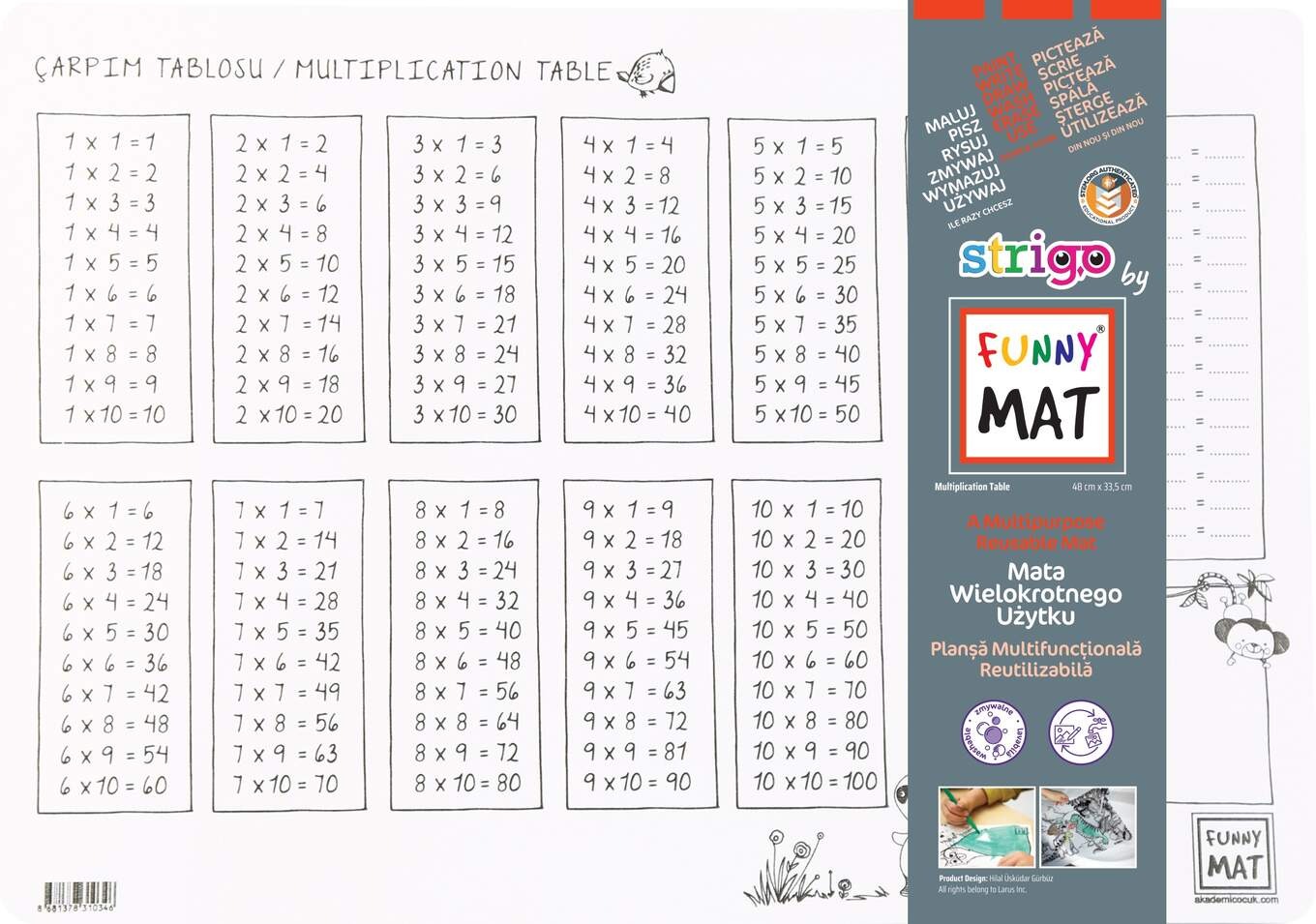 Opakowanie Biała mata Strigo Funny Mat Tabliczka mnożenia 48x33.5 cm