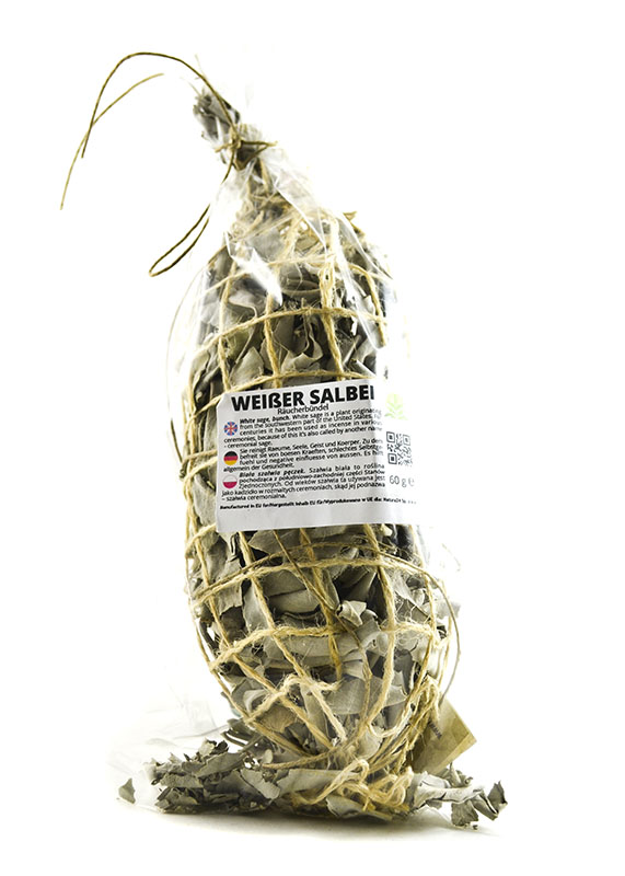 Szałwia biała to roślina pochodząca z południowo-zachodniej części Stanów Zjednoczonych. Posiada ona wysokie łodygi oraz białe liście, rośnie na suchych terenach gdzie jest mnóstwo światła słonecznego. Od wieków szałwia ta używana jest jako kadzidło w rozmaitych ceremoniach, skąd jej podnazwa – szałwia ceremonialna.
