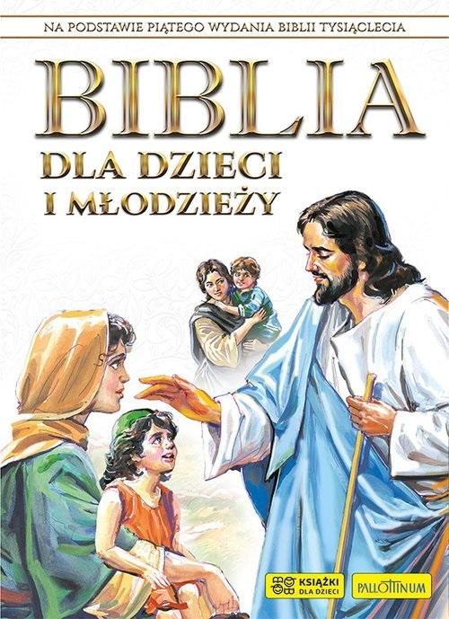 BIBLIA DLA DZIECI I MŁODZIEŻY to najnowsze wydanie książki BIBLIA DLA DZIECI, która w przystępnej i bogato ilustrowanej formie przekazuje historię zbawienia i tajemnicę paschalną. Książka została przygotowana we współpracy z WYDAWNICTWEM PALLOTTINUM. Teksty zaczerpnięto z Biblii Tysiąclecia, która stanowi oficjalny przekład Pisma Świętego, używany w Kościele katolickim w Polsce. Ksiązka posiada imprimatur.