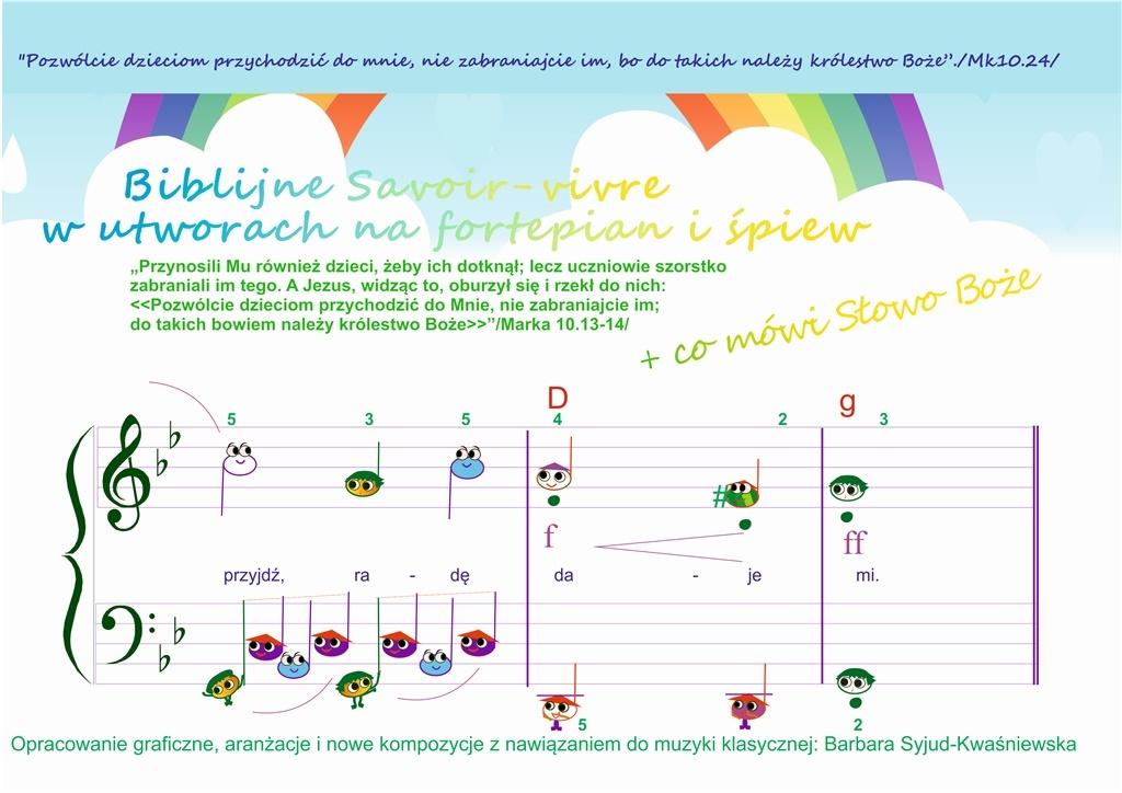 Ćwiczymy warsztat w grze na fortepianie z bohaterami Pięciodróżki. Biblijne Savoir Vivre na fortepian i śpiew, to podręcznik nutowy dla pasjonatów muzyki nie tylko wokalnej. Książka dodaje skrzydeł do grania na fortepianie oburącz w kluczach wiolinowym i basowym w trochę bardziej zaawansowanej już technice gry. Więc niech dom śpiewa w takich i o takich warunkach.