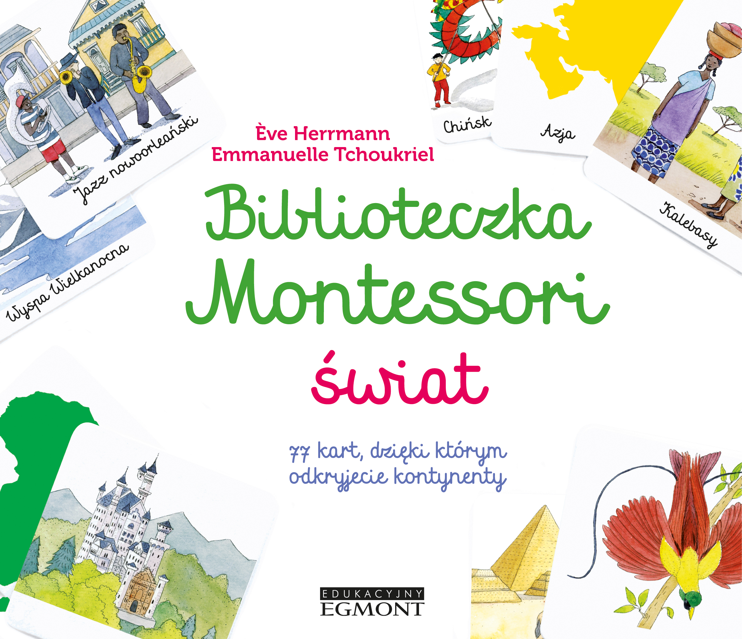 Zestaw 77 kart, dzięki którym dzieci odkryją kontynenty oraz ich krajobrazy, zabytki, sztukę i mieszkańców. Karty edukacyjne są niezbędnymi materiałami w pedagogice Montessori. Ich zadaniem jest wzbudzanie zainteresowania dziecka, otwieranie na świat i wzbogacanie słownictwa. Celem tego zestawu jest przedstawienie różnorodności i bogactwa świata, zachęcenie dzieci do obserwowania, dyskutowania i poznawania kontynentów oraz ich kulturowej różnorodności. Zestaw zawiera: 7 szorstkich kart 70 kart związanych z kontynentami 1 książeczkę z informacjami dla rodziców