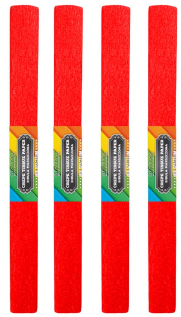 Bibuła marszczona, w kolorze czerwonym - niezbędna każdemu uczniowi na zajęciach plastycznych.
