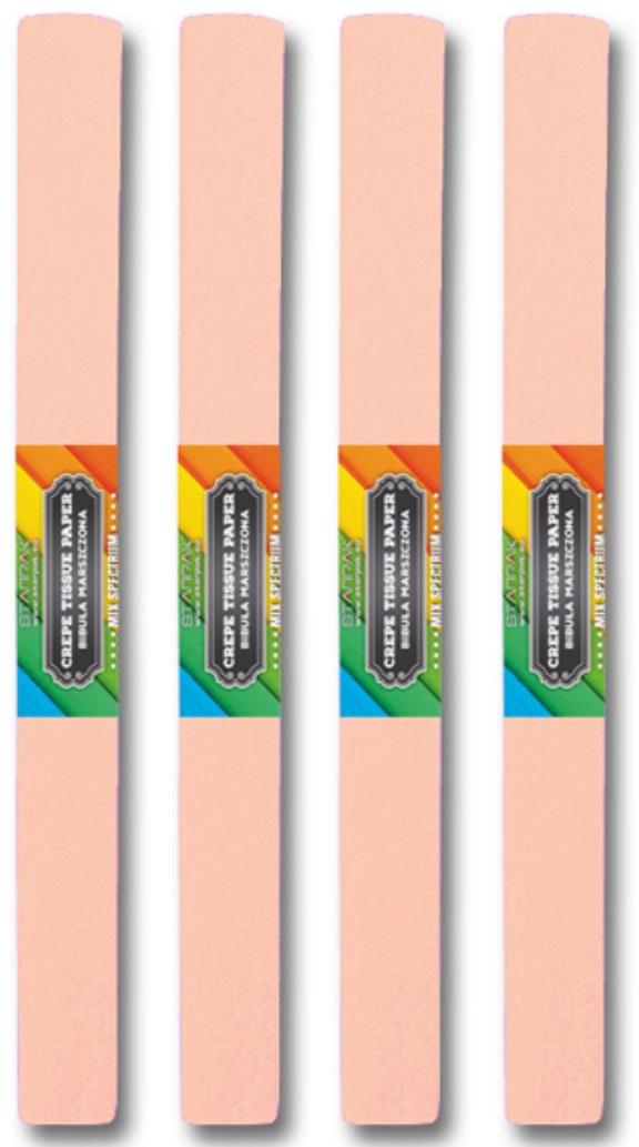 Bibuła marszczona w kolorze łososiowym. Niezbędna każdemu uczniowi na zajęciach plastycznych.
