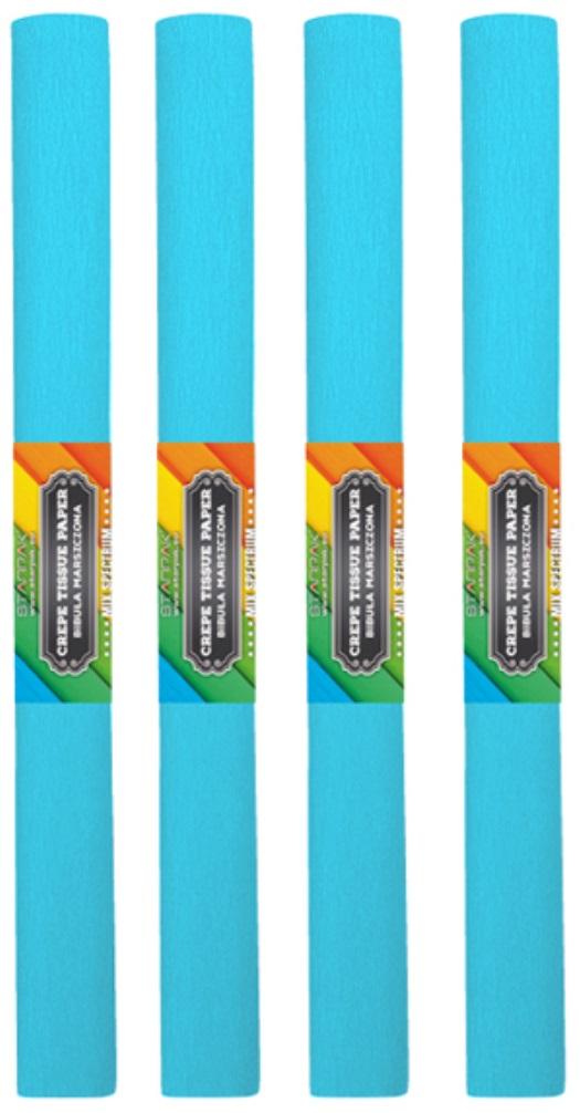 Bibuła marszczona, w kolorze jasnego błękitu - niezbędna każdemu uczniowi na zajęciach plastycznych.