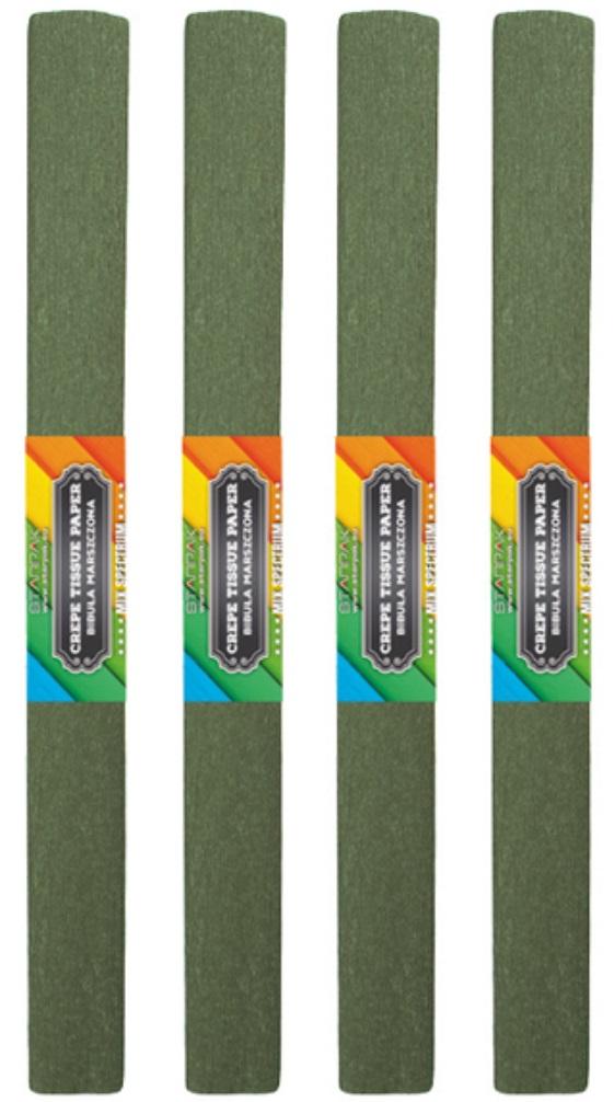 Bibuła marszczona w kolorze oliwkowym. Niezbędna każdemu uczniowi na zajęciach plastycznych.