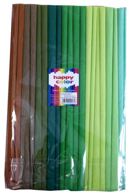 Bibuła marszczona Happy Color, mix kolorów zielonych, 10 rolek, 8 kolorów.