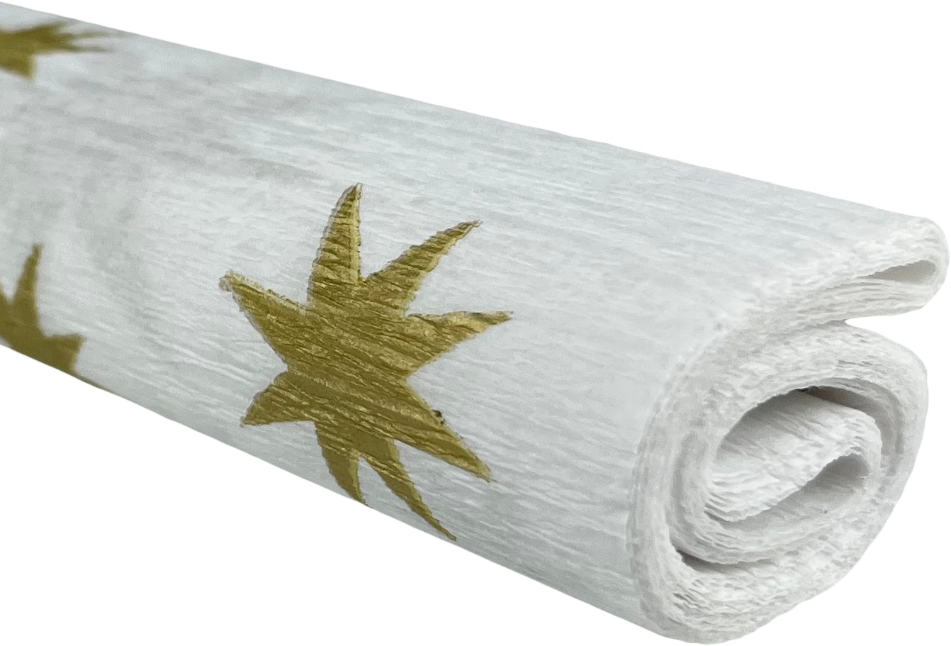 Bibuła marszczona 50x200 gwiazdy złote na białym 10 rolek