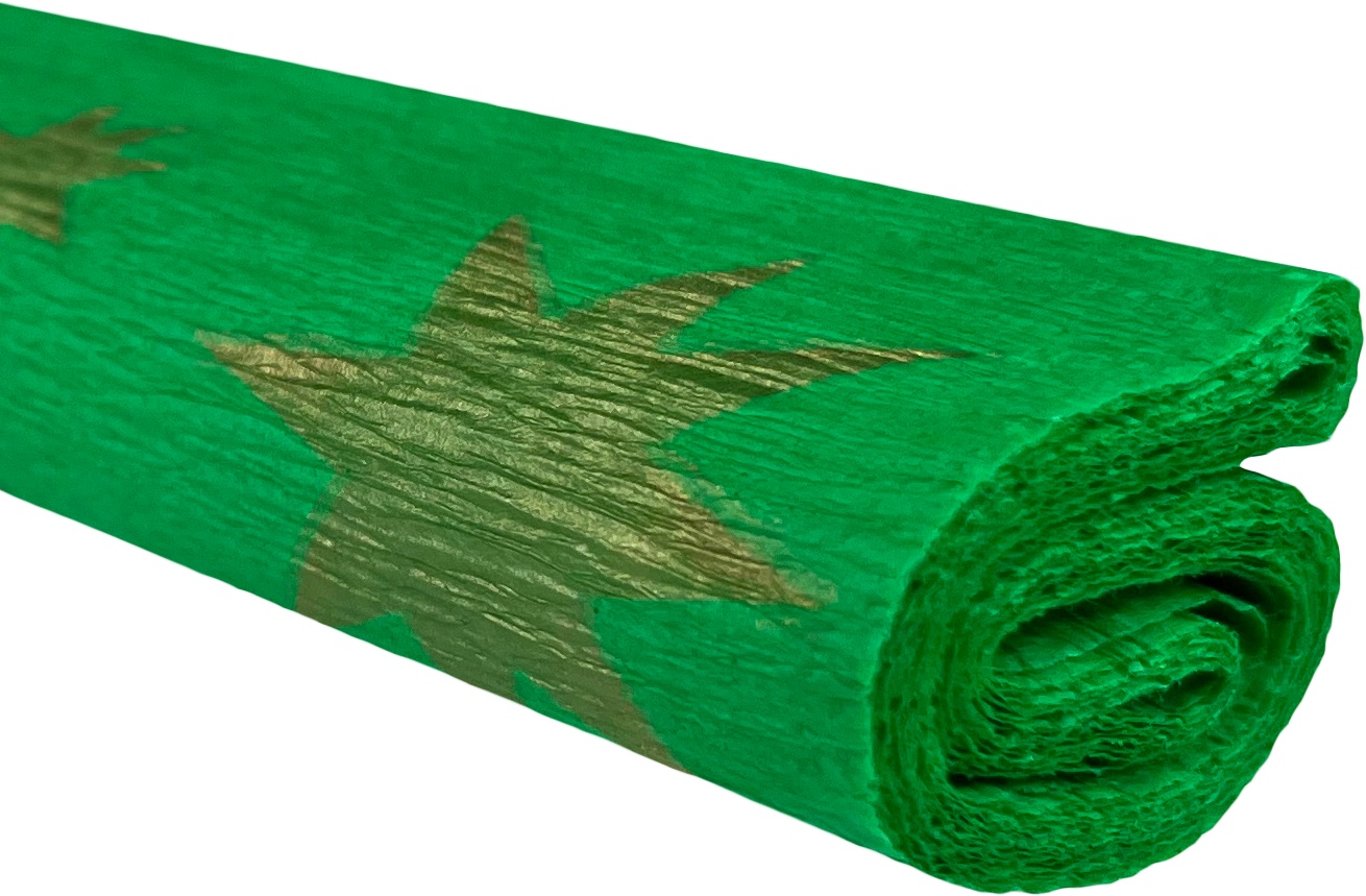 Bibuła marszczona 50x200 gwiazdy złote na zielonym 10 rolek