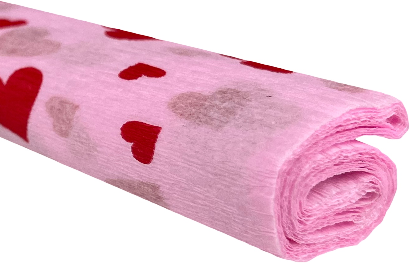 Opakowanie Bibuła marszczona 50x200 serca czerwone na różowym 10 rolek