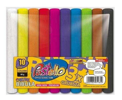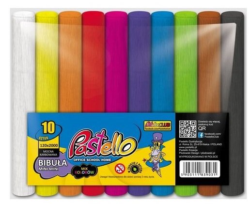 Bibuła marszczona w rolce PREMIUM. Gramatura 60 gram, wysokość 12 cm, długość 200 cm. . Miks 10 kolorów klasycznych: biały, żółty, pomarańczowy, czerwony, różowy, fioletowy, niebieski, zielony, brązowy i czarny. Idealna do różnych prac plastycznych w szkole lub przedszkolu. Stosowana do prac plastycznych, dekoracji i rękodzieła.