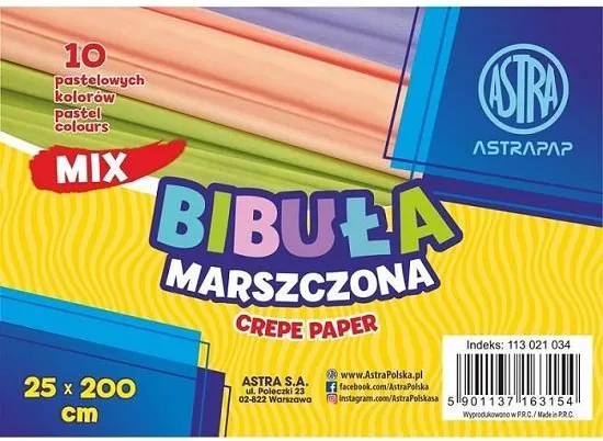 Opakowanie Bibuła marszczona pastel 25x200cm mix (10szt)
