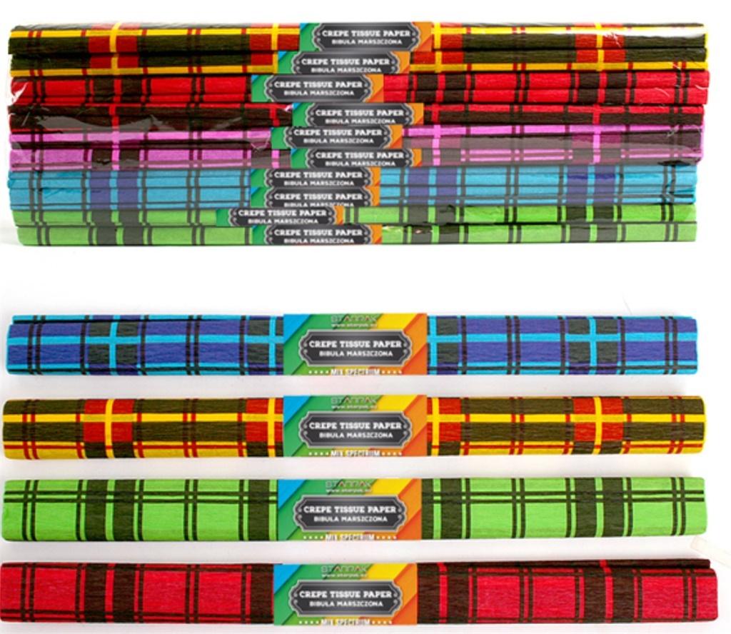 Bibuła marszczona we wzory w kratkę, mix w op. zbiorczym.
